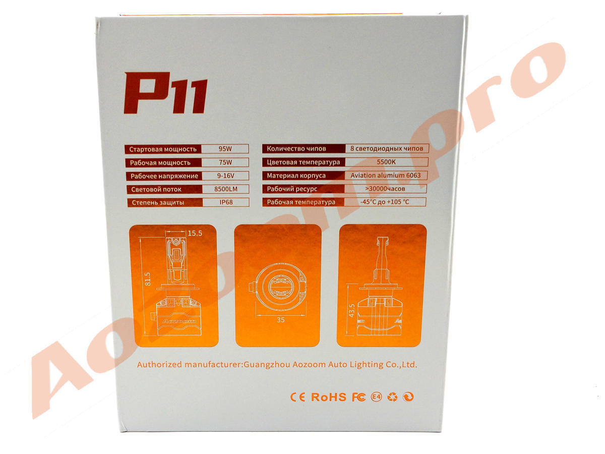 Новейшие мощнейшие лампы 2025 года от мирового лидера в сфере автосвета компании AOZOOM P11 с цоколем H1.