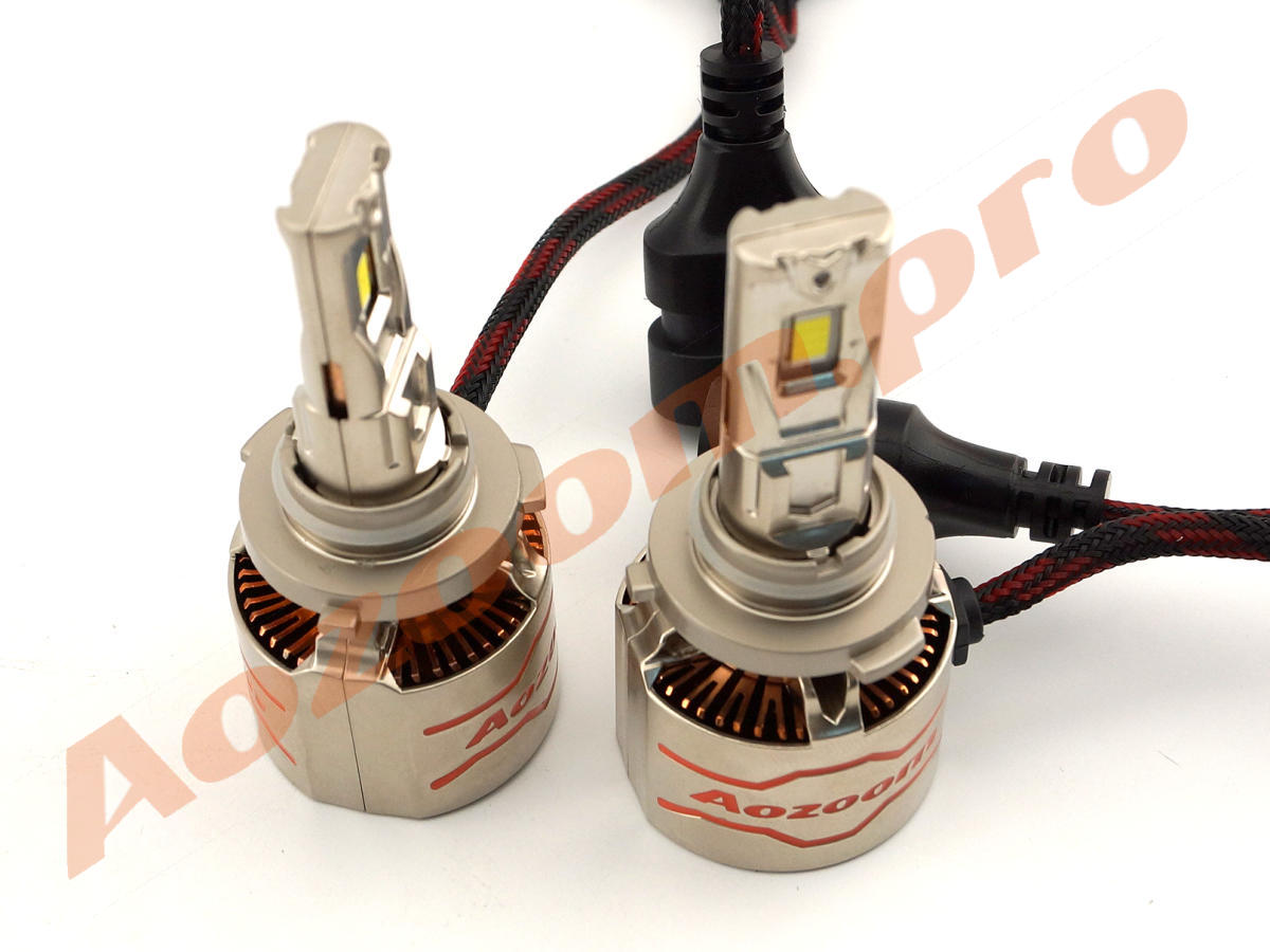 Лампы собраны на корейских светодиодных чипах. Для лучшего теплоотвода применены 2 тепловых конденсационных трубки и медная подложка. Лампы имеют увеличенный радиатор и вентилятор повышенной мощности, а также блок расширенной обманки CANBUS.