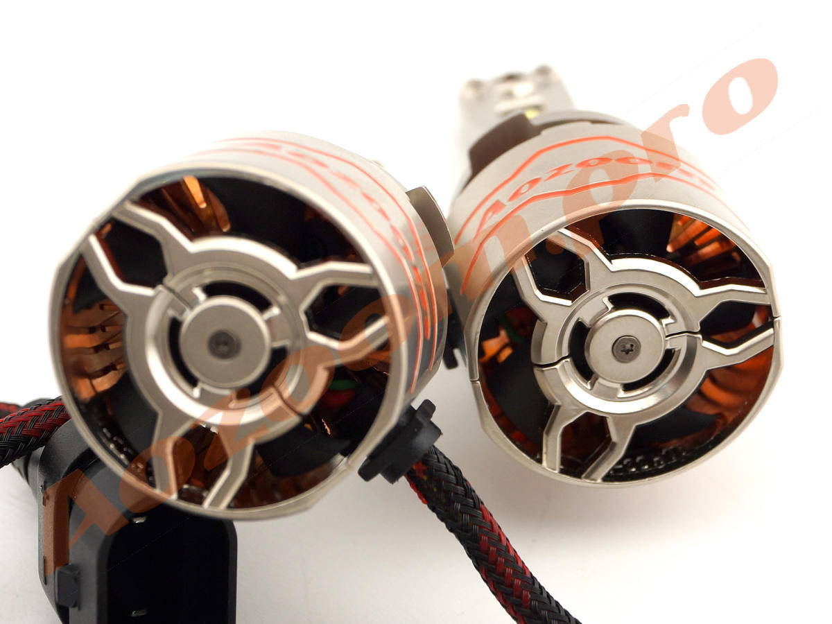 Лампы собраны на корейских светодиодных чипах. Для лучшего теплоотвода применены 2 тепловых конденсационных трубки и медная подложка. Лампы имеют увеличенный радиатор и вентилятор повышенной мощности, а также блок расширенной обманки CANBUS.