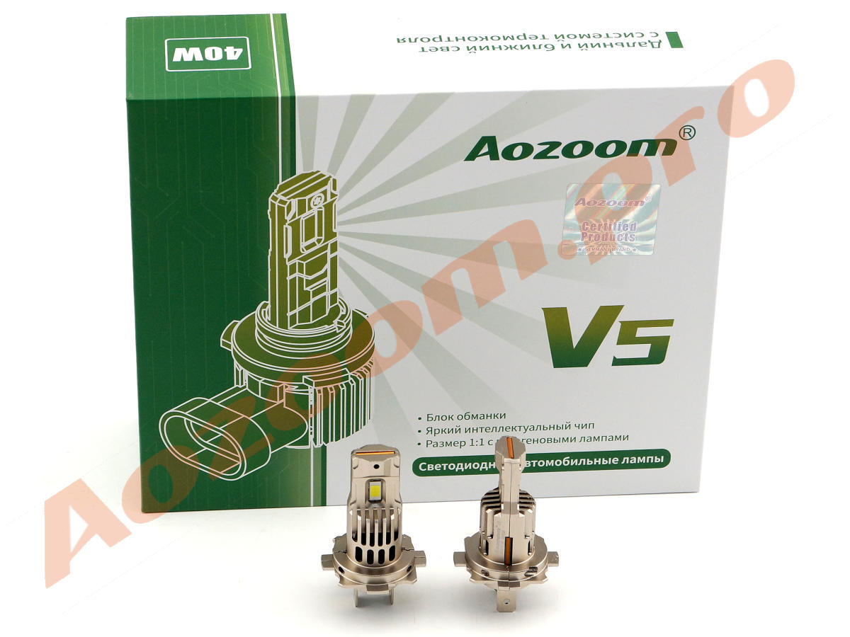 Новейшие компактные лампы 2025 года от мирового лидера в сфере автосвета компании AOZOOM V5 с цоколем H7.