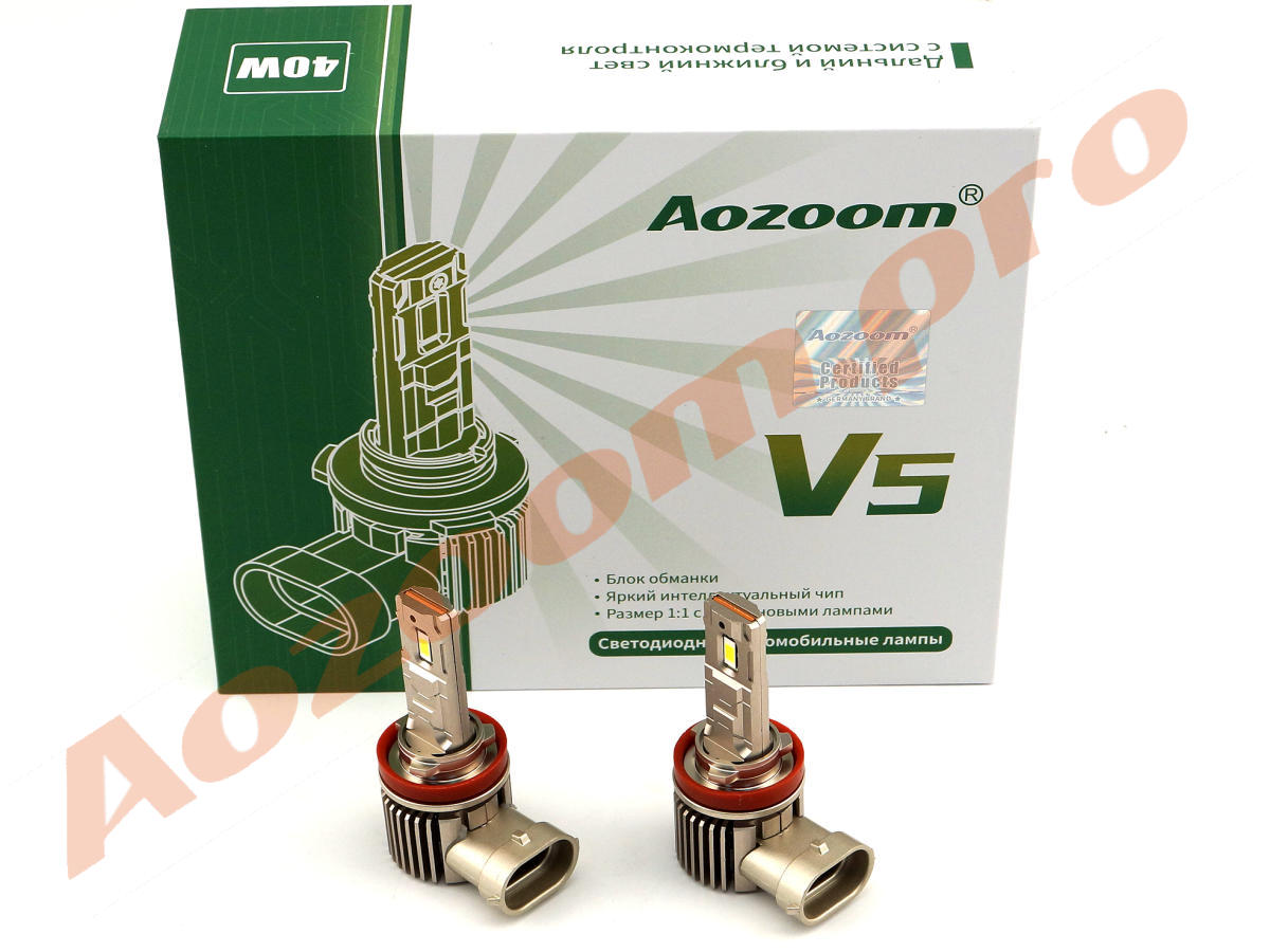 Новейшие компактные лампы 2025 года от мирового лидера в сфере автосвета компании AOZOOM V5 с цоколем H8.